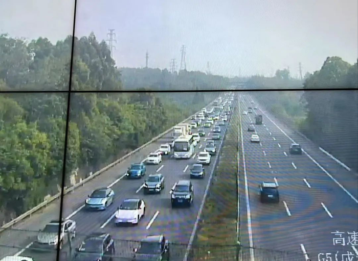 G5京昆高速(成雅高速):出城方向新津段至成乐青龙互通段车流量大车多缓行;