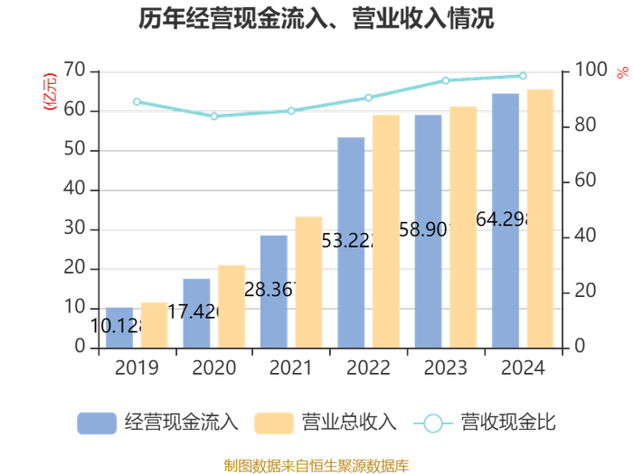 截至2024年,公司经营活动现金流净额为20.51亿元,同比增长435.34%;筹资活动现金流净额6.99亿元,同比减少55.38亿元;投资活动现金流净额-28.77亿元,上年同期为-71.38亿元。