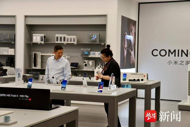 得益于活动期间的优惠政策与丰富体验,五一当天,焕新氛围持续走热。位于珠江路金鹰的小米之家等数码品牌店铺,前来选购手机等产品的消费者明显增多。