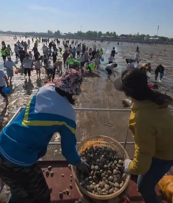 都不白来!山东一景区给赶海游客撒蛤蜊