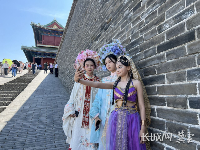 游客在石家庄正定古城拍照留念。长城网·冀云客户端记者 耿佳 摄