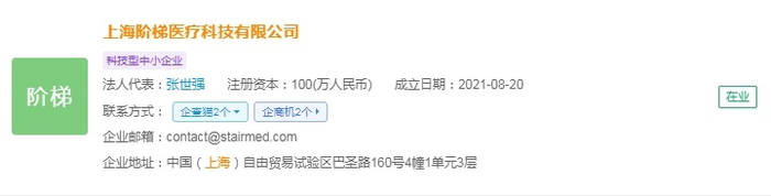 企查猫APP显示,上海阶梯医疗科技有限公司(简称:阶梯医疗)成立于2021年8月,法人代表是张世强,注册资金为100(万人民币),总部位于上海,是一家专注于植入式脑机接口领域的创新型科技企业。公司产品可应用于运动控制(如瘫痪、精细肢体控制、失语)、神经疾病病灶监测及调控(如帕金森症、抑郁症)、感知觉修复(如失明、失聪)等多个领域。