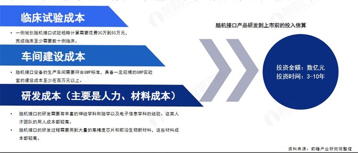 目前我国脑机接口产品按照二类或者三类医疗器械进行产品注册备案和上市销售管理,初步估算,单一产品的投入至少需要达到数亿元人民币,投资回收期也需要至少3年以上,且该投入还存在效果不及预期或者失败的风险。因此高昂的投入成本也成为了产业发展的巨大阻碍。