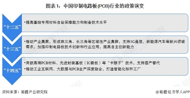 印制电路板(PCB)是电子产品的关键电子互联件,被誉为“电子产品之母”。近年来我国印制电路板行业在政策支持下有了较快的发展,从“十二五”规划中的提高基础专用材料自给保障能力和制备技术水平,到“十三五”规划中的形成产业集群、加强印制电路板技术创新和成果应用,再到“十四五”规划中的发展高性能印制电路板(PCB)产品,研发新型印刷电路板及覆铜板材料,印制电路板(PCB)行业朝着高端化、规模化、绿色化方向不断发展。