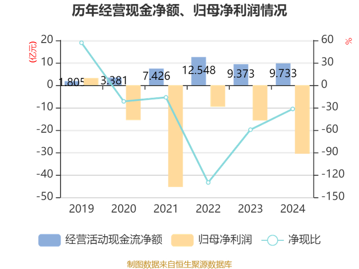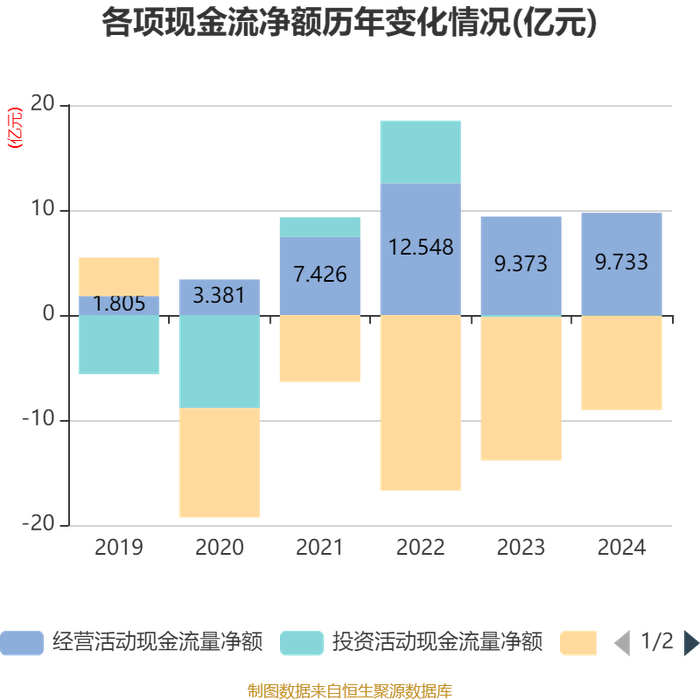 截至2024年,公司经营活动现金流净额为9.73亿元,同比增长3.85%;筹资活动现金流净额-8.97亿元,同比增加4.71亿元;投资活动现金流净额-735.37万元,上年同期为-1900.39万元。
