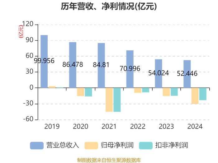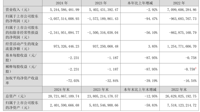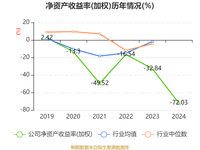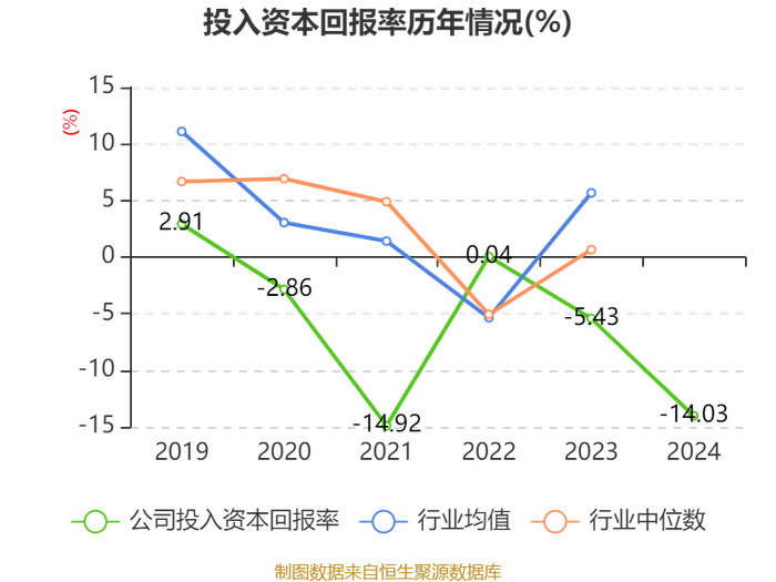 数据显示,2024年公司加权平均净资产收益率为-72.03%,较上年同期下降39.19个百分点。公司2024年投入资本回报率为-14.03%,较上年同期下降8.6个百分点。