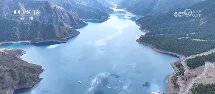 每年冬天,海拔1900多米的天山天池湖面封冻,封冻期达100多天。“五一”前夕,新疆阜康市天山天池景区冰雪消融,正式迎来“开湖”。