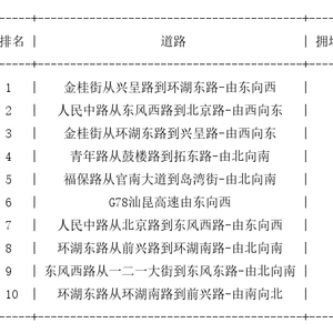 昆明道路拥堵排行榜top10: