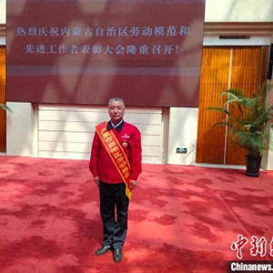 一头日渐斑白的短发,一身红衣蓝裤的工装,一条崭新的烫金绶带……4月24日,站在内蒙古自治区劳动模范和先进工作者表彰大会现场,获评“内蒙古自治区劳动模范”的吴宝龙身姿笔挺,精神焕发。