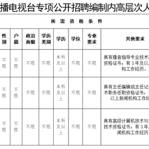 泉州广播电视台公开招聘具有副高及以上专业技术职务任职资格人员12名