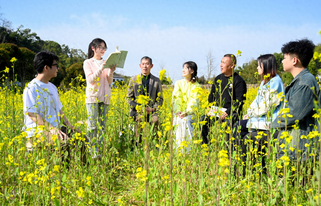 “春日正好,村里花开了”“欢迎各位同学来我们村,和我们一起进行诗歌创作”“我们一起在花下读书,田间写诗!”……湖南城市学院的视频号里,来自清溪村、苏溪村的农民诗人纷纷“亮相”,发出诗歌创作的邀约,一起在春日里书写新时代“山乡巨变”。