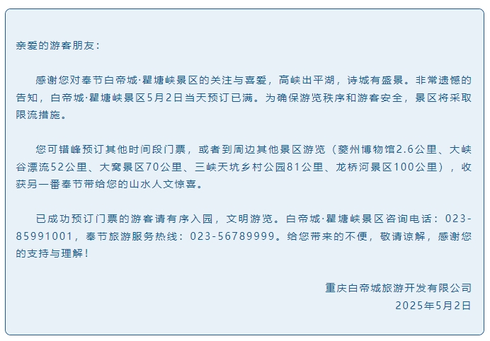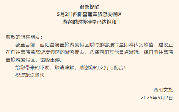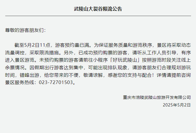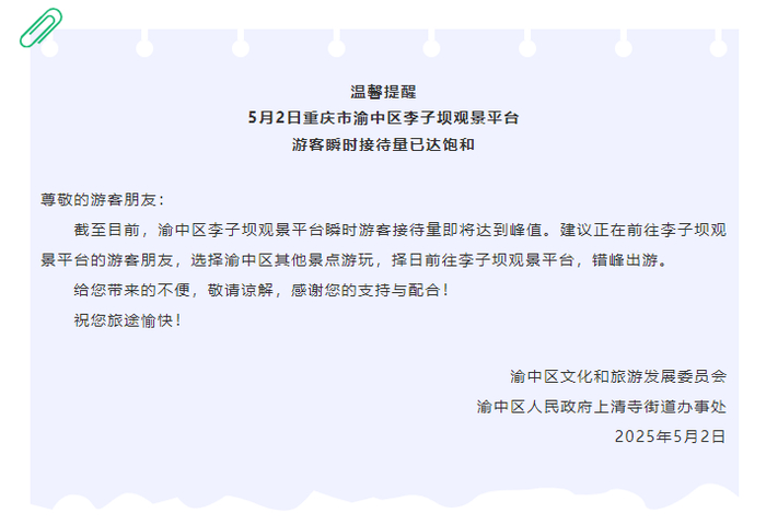 重庆多个景区发布限流通告