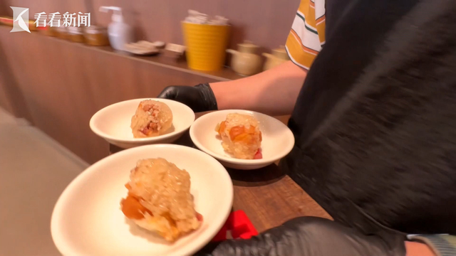 新店里推出了试吃活动。食客赞叹:"饭团层次感十足,吃出了幸福味道!"