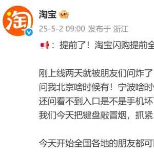 淘宝突然宣布!提前上线