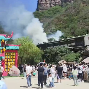 5月1日,多名游客称在河南新乡宝泉大峡谷游玩时,景区内发生火灾。
