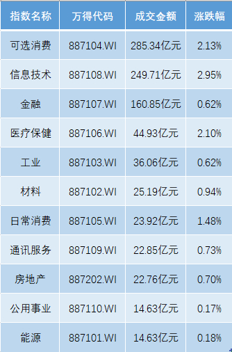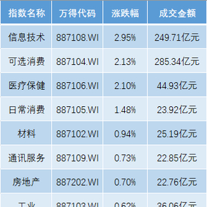 而从成交额看,周五(5月2日)成交超百亿的指数有3个,分别为可选消费、信息技术、金融,成交额分别为285.34亿元、249.71亿元、160.85亿元。成交垫底的指数为能源、公用事业、房地产,成交额依次为14.63亿元、14.63亿元、22.76亿元。