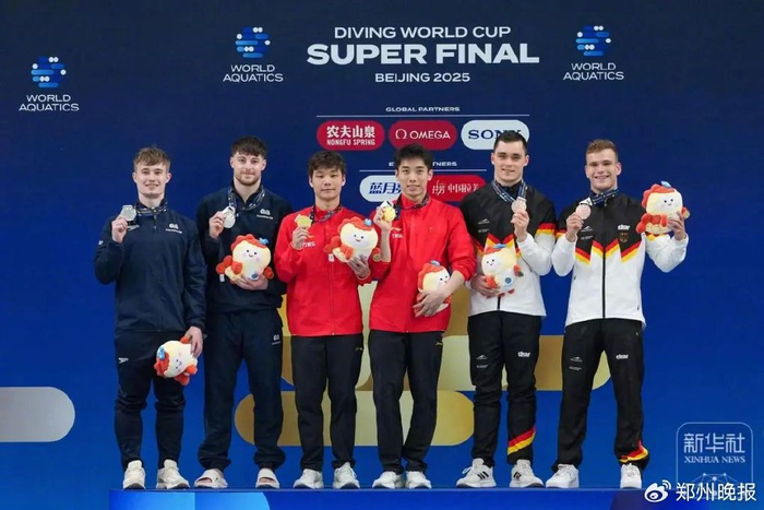 5月2日,2025年世界泳联跳水世界杯总决赛,中国队全红婵和陈芋汐以350.88分夺女子双人10米台冠军,默契十足。