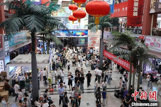 5月2日,义乌国际商贸城一区中庭内人头攒动。“五一”假期期间,浙江义乌国际商贸城正常营业,不少商户特意开放零售渠道,以迎接假期的大客流。中新社记者 鲍梦妮 摄