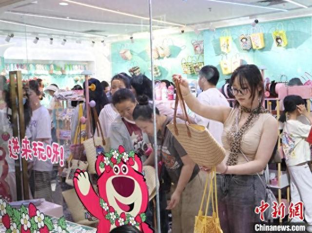 5月2日,顾客选购手提包。“五一”假期期间,浙江义乌国际商贸城正常营业,不少商户特意开放零售渠道,以迎接假期的大客流。中新社记者 鲍梦妮 摄