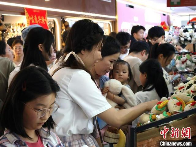 5月2日,顾客选购玩偶挂件。“五一”假期期间,浙江义乌国际商贸城正常营业,不少商户特意开放零售渠道,以迎接假期的大客流。中新社记者 鲍梦妮 摄