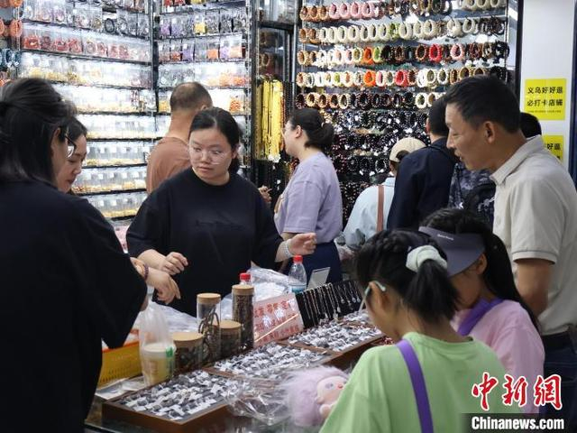 5月2日,一饰品商铺前围满顾客。“五一”假期期间,浙江义乌国际商贸城正常营业,不少商户特意开放零售渠道,以迎接假期的大客流。中新社记者 鲍梦妮 摄