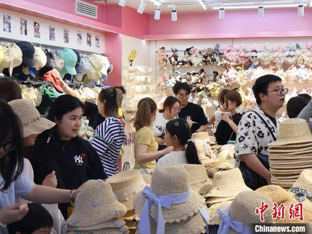 5月2日,顾客选购帽子和饰品。“五一”假期期间,浙江义乌国际商贸城正常营业,不少商户特意开放零售渠道,以迎接假期的大客流。中新社记者 鲍梦妮 摄