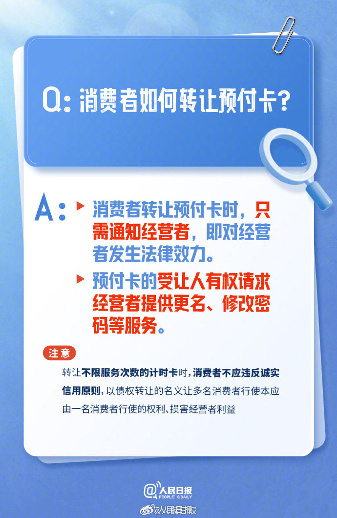 新规还解决了退卡难、转卡难的问题。在合理情况下要求退卡、转卡,商家不能无故拒绝。比如:商家迁店搬远、商家换老板、总预约不上服务、身体健康出现重大问题不再需要服务了,这些情况都可以要求退卡。另外,转卡也更自由了,只要通知商家,转让即可生效。