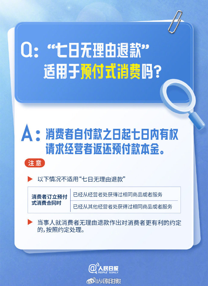 新规规定,预付式消费也能享受七天内无理由退款。不过有一种情况例外,如果之前是因为享受过相同服务而办的卡,就不能滥用这项福利。