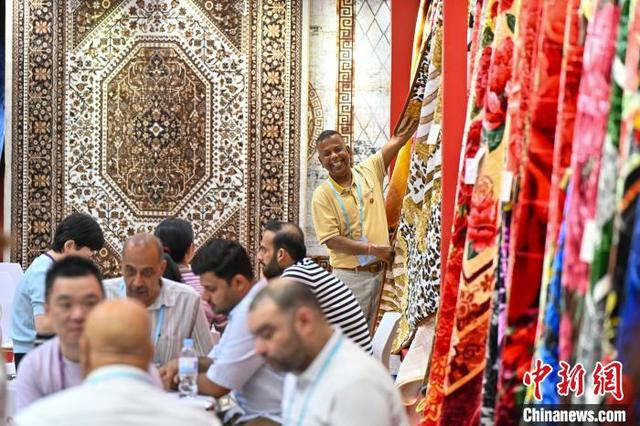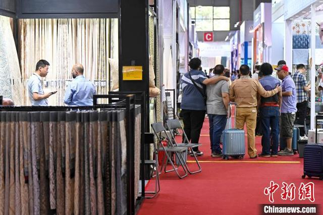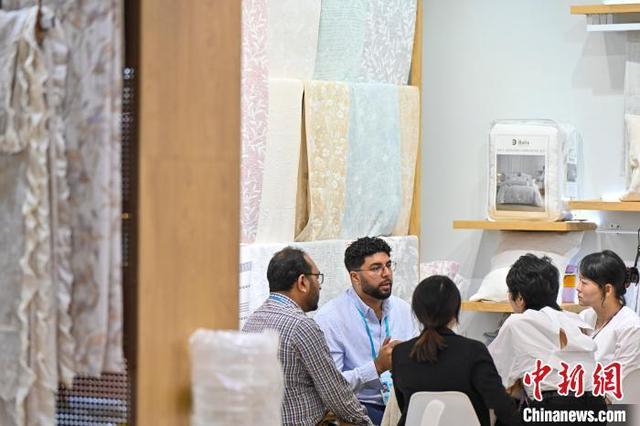 5月2日,广交会境外采购商在家用纺织品展区与参展商洽谈。正在广州举行的第137届中国进出口商品交易会(广交会)第三期以“美好生活”为主题,展出五个专业板块,共21个展区。其中家用纺织品板块展览面积6.57万平方米,展位3168个,吸引1649家企业参展。中新社记者 陈骥旻 摄