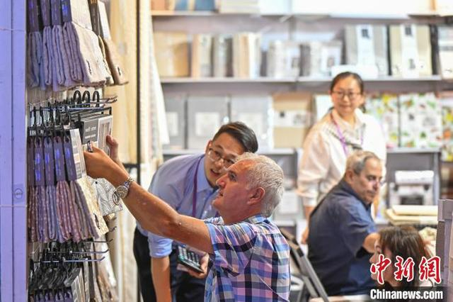 5月2日,广交会境外采购商在家用纺织品展区挑选产品。正在广州举行的第137届中国进出口商品交易会(广交会)第三期以“美好生活”为主题,展出五个专业板块,共21个展区。其中家用纺织品板块展览面积6.57万平方米,展位3168个,吸引1649家企业参展。中新社记者 陈骥旻 摄