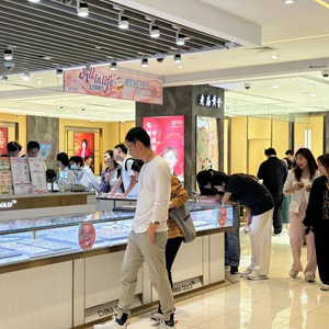 拥有600多个品牌的第一八佰伴,是很多消费者一站式购物的热门选择。5月1日下午,二楼的黄金珠宝区聚集了一波到店客流,消费者们手握新鲜到手的消费券前来选购。