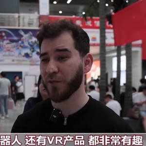 外国游客:我的朋友们是第一次来义乌,他们都很喜欢义乌,因为这里的产品都很有意思,吃住也都很舒适。我们刚刚在体验AR产品、新型机器人、VR产品,都非常有趣。