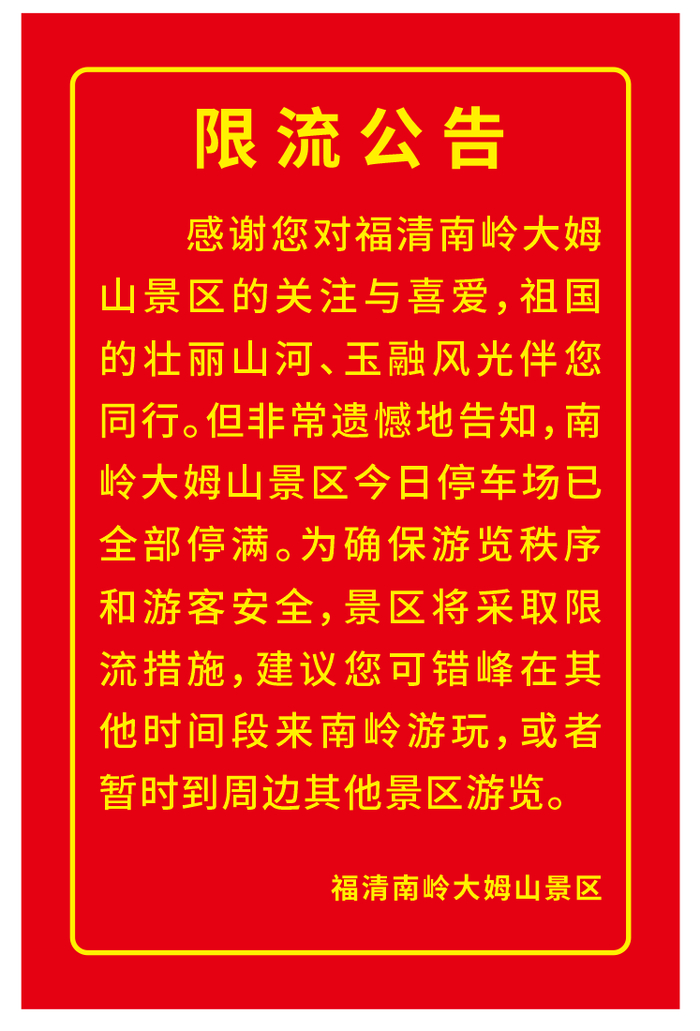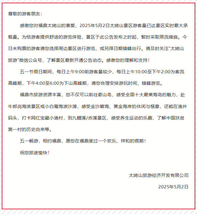 太姥山景区发布公告