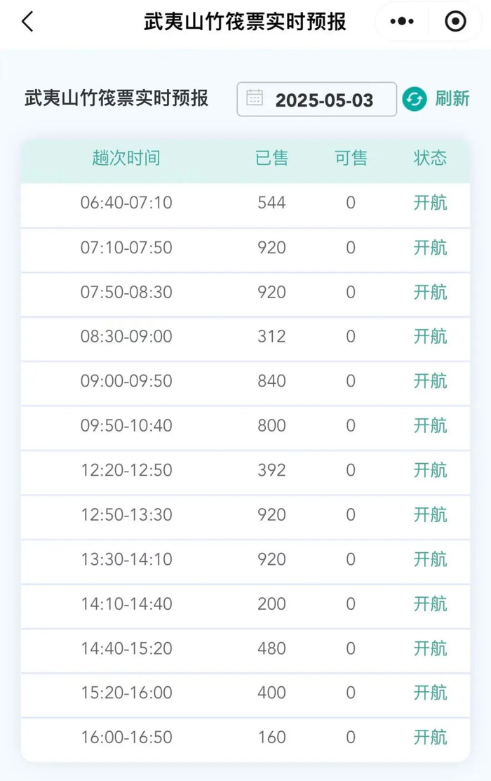 5月3日、5月4日的武夷山竹筏票