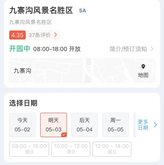 提示景区售票情况