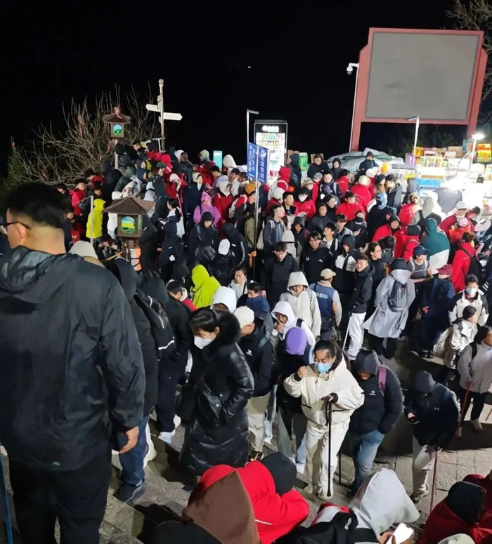 据极目新闻报道,“五一”假期首日凌晨4时,夜爬泰山的游客们陆续登顶,从南天门到玉皇顶,山路两侧挤满了休憩等待观日出的游客。在玉皇顶的一处公厕内,同样挤满了前来避寒的游客。