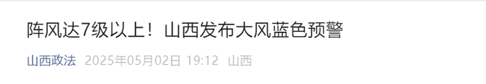 山西:发布大风蓝色预警
