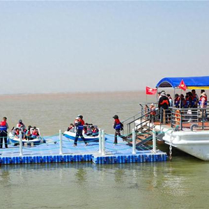 5月1日,乌海湖一号码头坐船的游客排起长队。郝鑫 摄