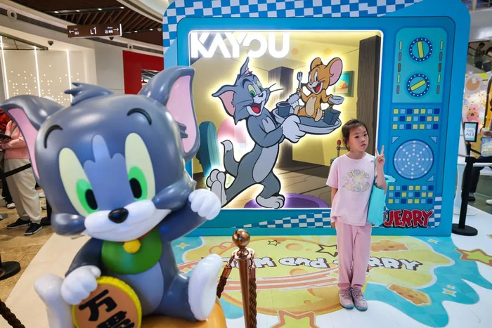 记者发现,饺子导演手绘的哪吒票房冲刺手绘图出现在店内,成为市民打卡热点。现场还设有哈利·波特、猫和老鼠、飞天小女警三大热门IP专区,粉丝可以在现场体验沉浸式互动。作为城市旗舰店,南京东路店还准备了多款融合上海地标特色的限定产品。