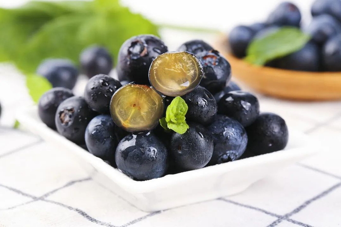 挑选要点:选择果粒饱满、表皮无褶皱、果蒂呈嫩绿色且干燥的蓝莓。若果蒂发黑、干瘪,则表明蓝莓已不新鲜。