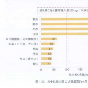 蓝莓的维生素C通常有10~34毫克/百克,最高的也只有34毫克/百克,这个含量在果蔬界只算中等水平,比草莓、猕猴桃、大枣等其实都要少。