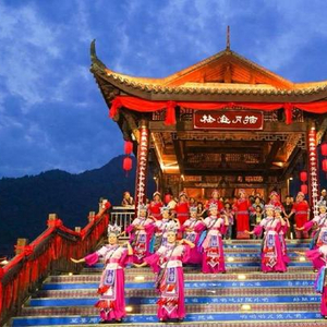 歌声起,鼓乐鸣。桃溪人家湖畔,巴山迎客、巴山耕韵、巴山欢歌、巴山共舞、巴人巡游,串联土家迎客歌、巴人农耕渔猎、巴人土家婚俗、摔碗酒等生活互动场景,展现景区浓厚巴文化底蕴。