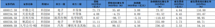 其中,科创50成分股公司涵盖科创板市值大、流动性好的50家企业,截至今年4月30日,除中芯国际外,科创50成分股均已披露2025年一季报,合计实现营业收入1245.23亿元,实现净利润16.17亿元。