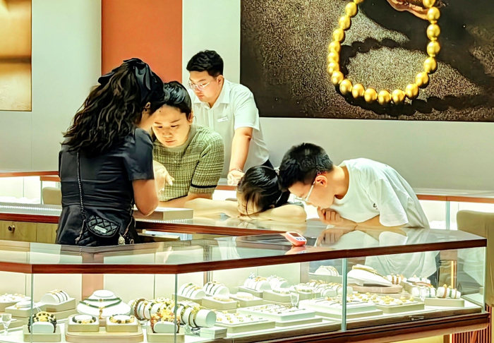 环贸ICD推出的“五一礼享购”活动,9个积分可兑50元立减券、最高可兑100元立减券、得到70余家品牌参与。中国黄金的柜台前,选购黄金的顾客络绎不绝,不少游客还是专程为优惠而来。