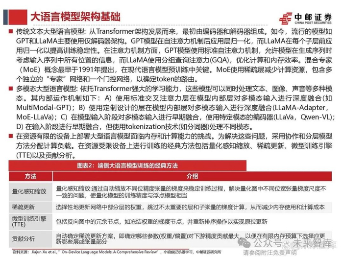 在资源有限的设备上部署大型语言模型面临内存和计算能力的挑战。为解决这些问题,采用协作和分层模型 方法分配计算负载。在资源受限设备上进行训练的经典方法包括量化感知缩放、稀疏更新、微型训练引擎 (TTE)以及贡献分析。