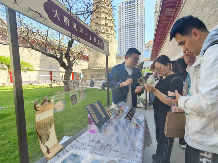 在兰州市博物馆,连续5天的“大明风华古风集市”以劳动节为契机,将传统民俗与现代节庆相结合,打造沉浸式文化体验空间。踏入集市,仿若穿越千年。随处可见身着汉服的游客与商贩,让观众沉浸式体验。“这个真别致,我还是第一次见到这样的文创产品。每一个都是独一无二,既有历史感,又有文化底蕴。”在古籍残页文创的摊位前,市民张鑫将一幅民国时期字样的“我堂堂”书卡收入囊中。