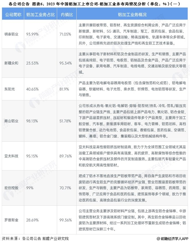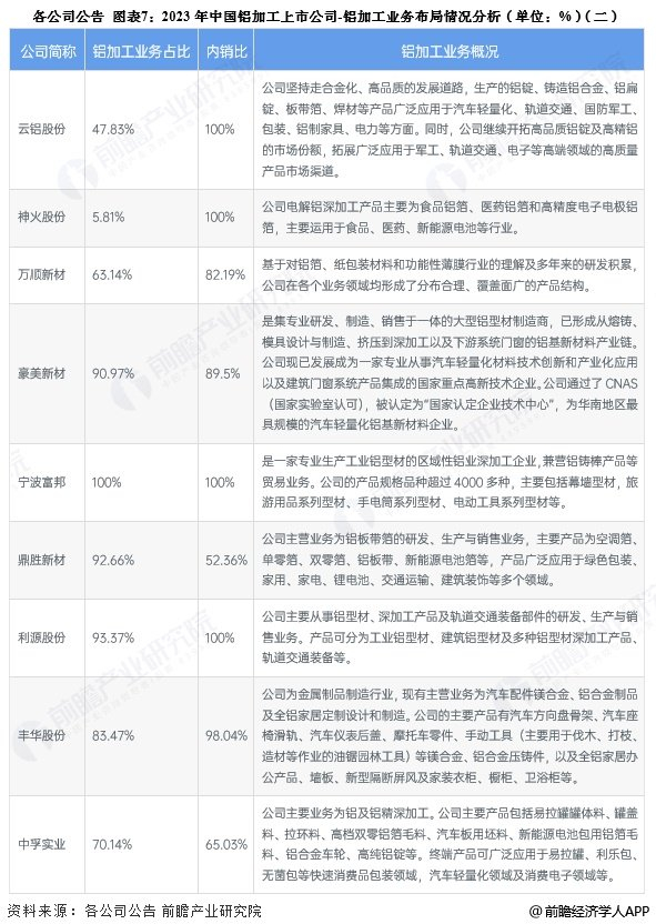 2、铝加工行业上市公司业务布局对比