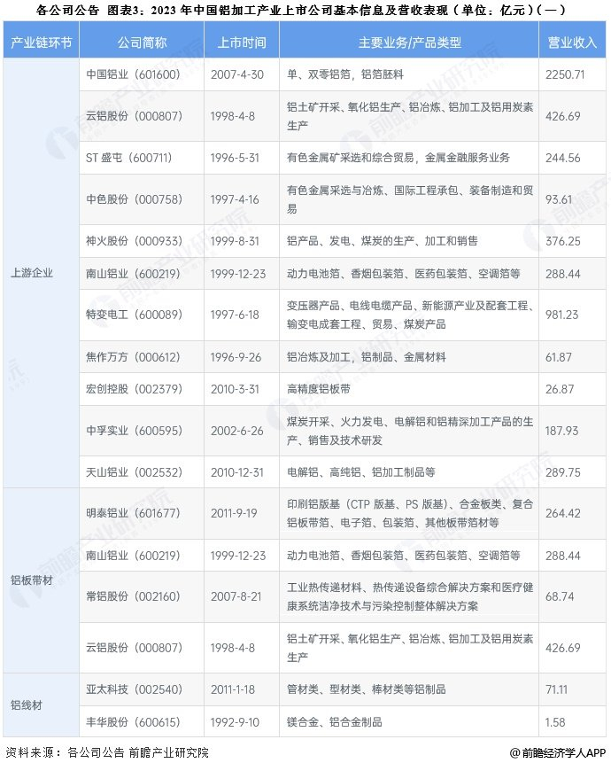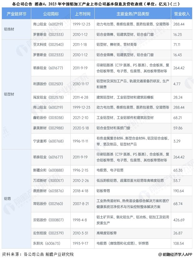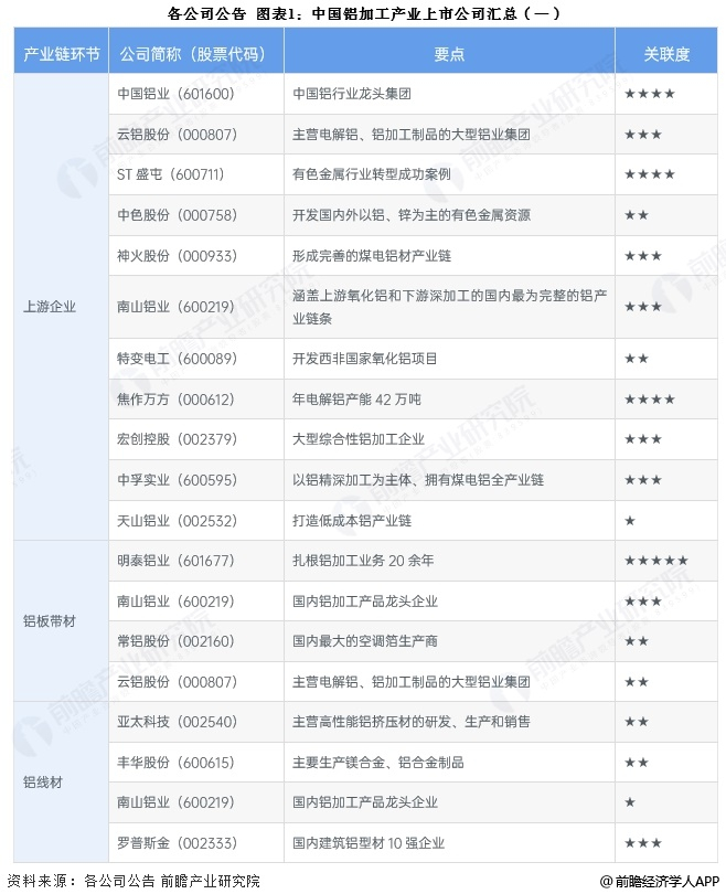 1、铝加工产业上市公司汇总