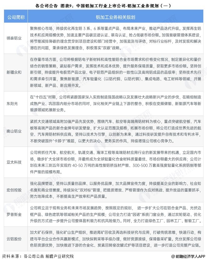 以下为我国铝加工上市企业铝加工业务相关规划总结: