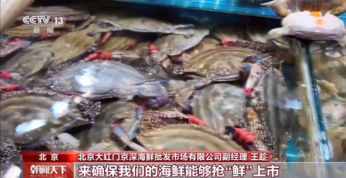 北京大红门京深海鲜批发市场有限公司副经理王趁:“五一”前期市场整体交易量呈上升趋势,市场每天都会有十几辆车采买海鲜,由产地直供我们的车辆入场,减少中间环节,来确保我们的海鲜能够抢“鲜”上市。